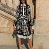 This dress is a true work of art — where graceful tailoring meets the uniqueness of hand-drawn patterns and a refined interplay of color and silhouette. Made from luxurious Italian silk twill, it captivates both visually and to the touch.