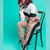 Delicate inserts adorned with sparkling Swarovski crystals add a touch of sophistication and femininity, transforming this casual set into a truly chic outfit.