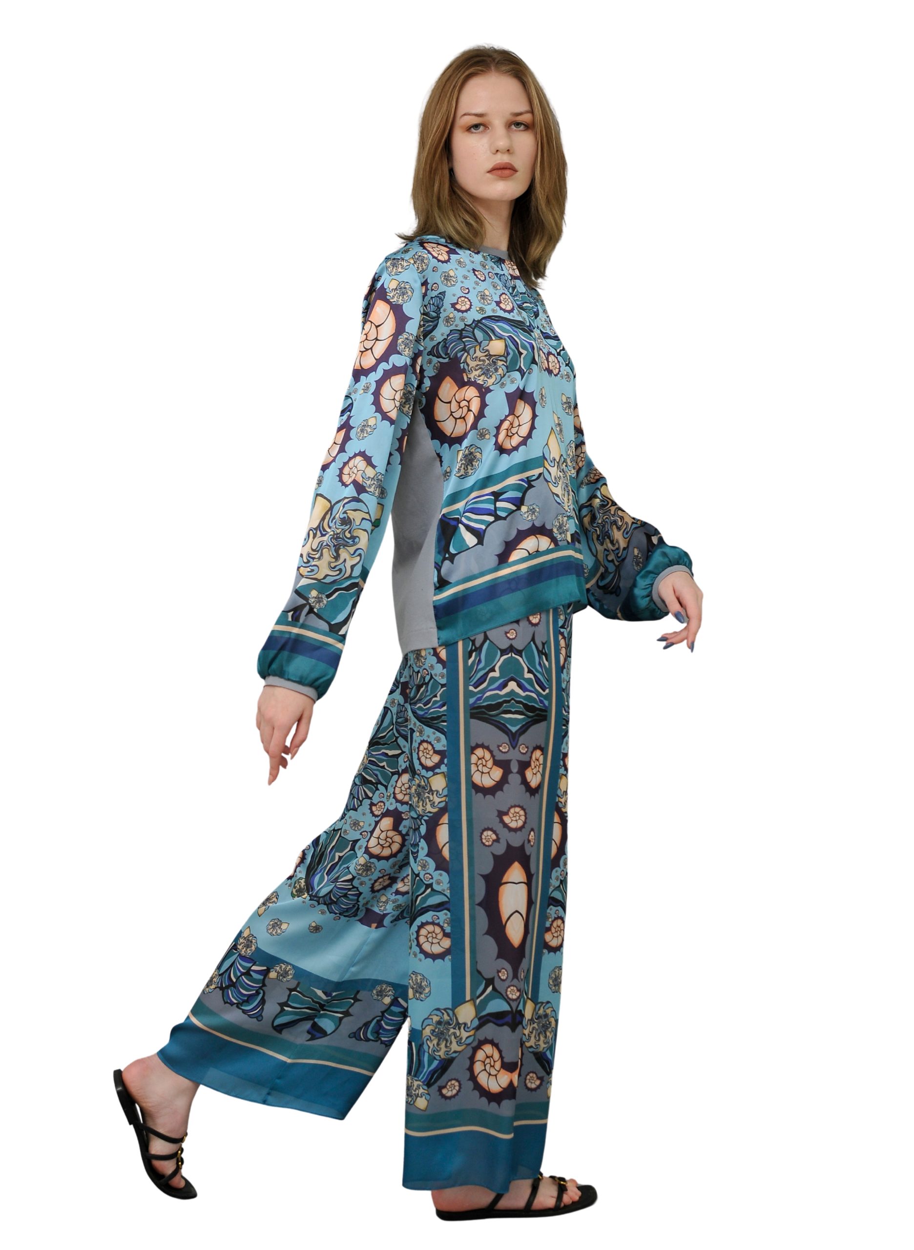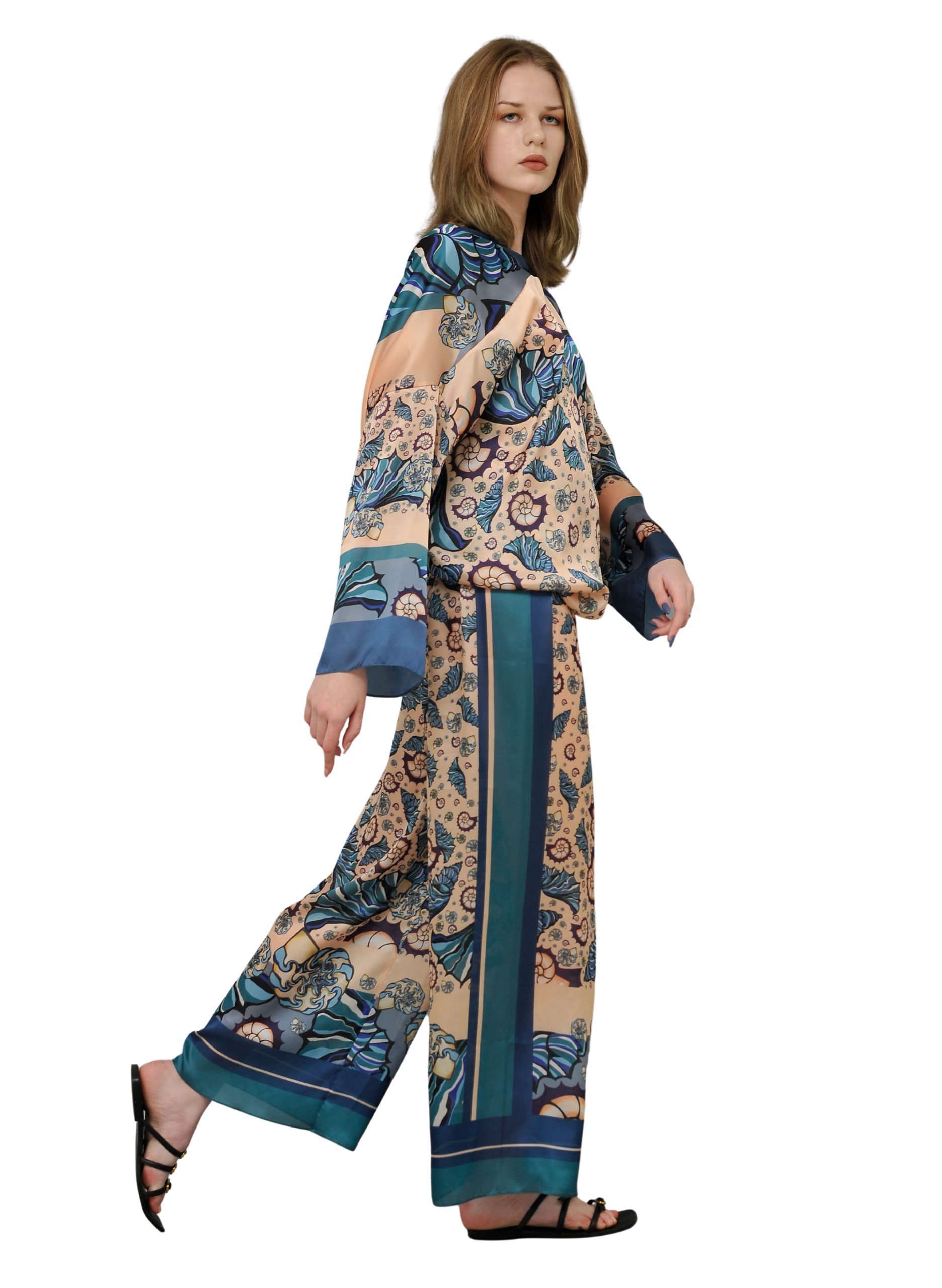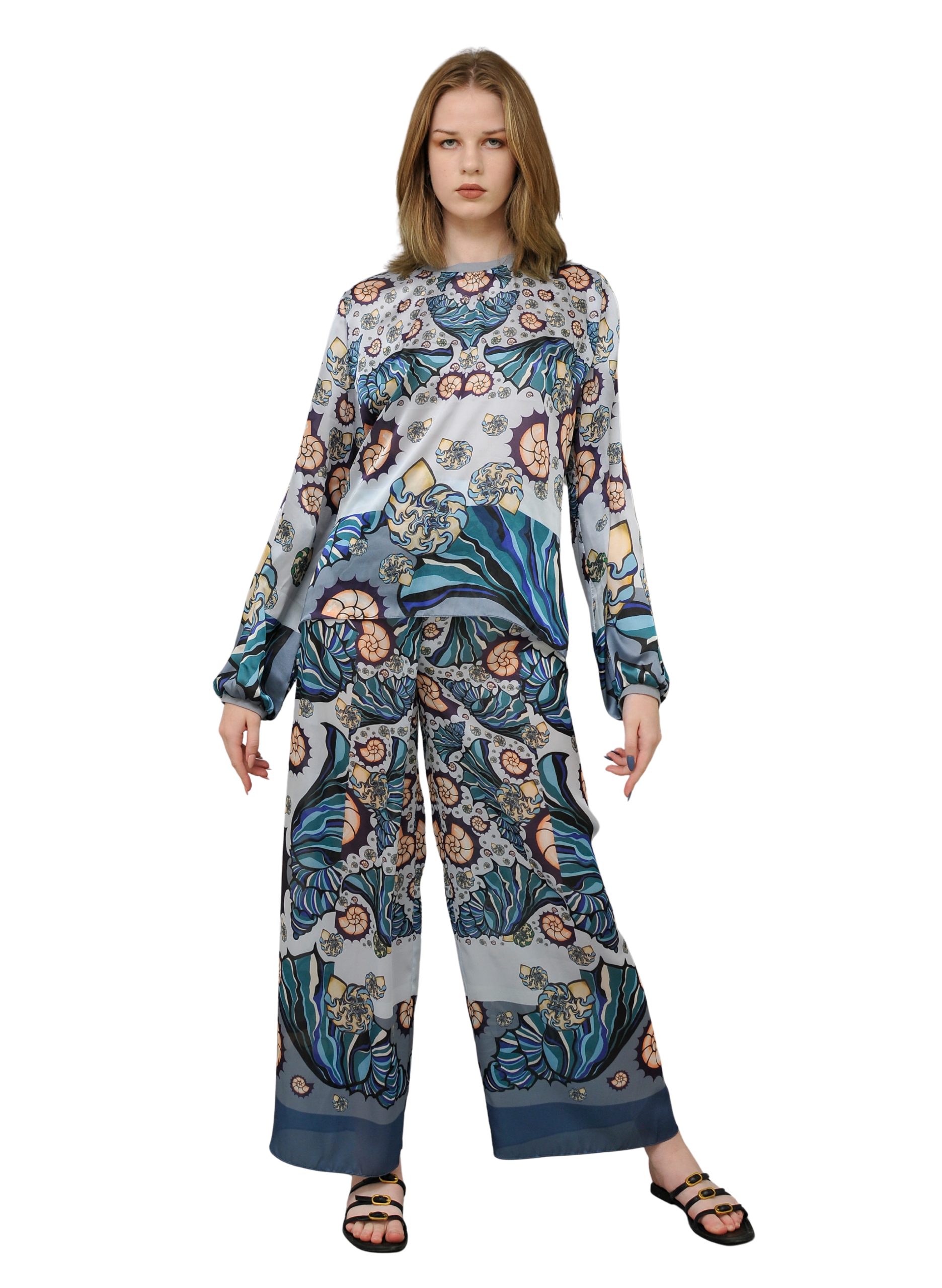 The unique graphic design from our Ocean Depth collection adds individuality and artistic flair to your look. These trousers pair beautifully with a simple white T-shirt or with our matching blouses, tunics, and scarves from the same line.